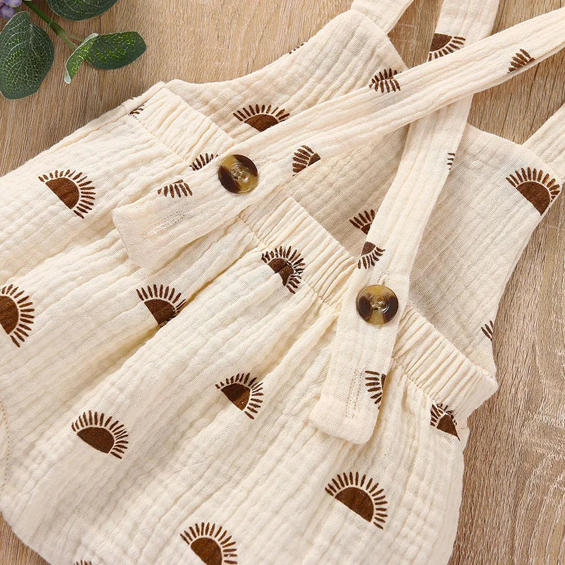 Whether it's a day at the beach or a casual outing with family, our Sun Printed Suspender Rompers are the perfect choice for your child's summer clothing.